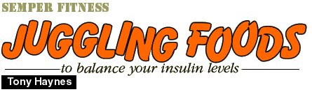 There are several ways to help control the production of insulin in the body. The most important is diet. Watch the number of simple carbohydrates that you intake. Examples of simple carbohydrates include table or refined sugars, fruits, candy, soda pops, etc. Try to eat more proteins, fiber, and complex carbohydrates (in moderation). The second way to improve your use of insulin is through exercise. Try to get on some type of exercise program. You can even try walking and calisthenics three to five times per week. Both of these things will help you to control that all-powerful hormone, INSULIN. Hopefully, this information will shed some light on an important hormone that many people are mis-informed about, and lead to a much healthier life. Well guys and gals, that's the scoop from Semper Fitness this week. Stay pumped, stay motivated and OO-RAH! Semper Fidelis!