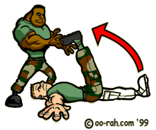 The following part will be done in a pyramid fashion. Have your troops form a large pt circle around you. There are three exercises we will be alternating between. These are push-ups, sit-ups/crunches and Hello dollies/flutter kicks. When I say that they will be done in a pyramid fashion, I mean that you will conduct one of each exercise consecutively, then two of each one, then three, etc, etc up to ten. At first you may only be able to go up to seven or eight. That’s okay, we have to start somewhere. All exercise will be four count. Now,
