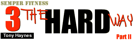 o-rah and Semper Fidelis to all of the readers at Semper Fitness. Just to recap from last issue, we started our "Three the hard way" workout for those who just want to tone up and not murder themselves in the gym. Last issue we started with chest, triceps and abdominals. This issue we'll be working back, biceps and hamstrings. Let's not waste anymore time talking and get started.