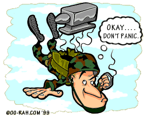 ell, here is another one of those stories that starts out with, "There I was...." This isn't a combat or peace time deployment story, and in fact it took place in Yuma Arizona. It was on my 18th jump at the Military Freefall School at YPG that I had a canopy malfunction. There were a total of 46 students, of which only four of us were Marines. The rest were Navy SEALS, Green Berets, and a few Air Force CCT guys. The atmosphere at the school was great, and the instruction was equally phenomenal. Marine instructors included SSgt. Thurmond, GySgt. Miller, SSgt. Rabidaux, and GySgt. Olson, all of which are Recon Marines.