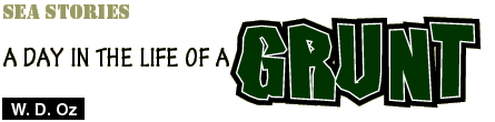 After the Gulf war my unit reassembled as a boat unit (Coxswain Platoon) and went back home to Camp Lejeune, NC. There we trained extensively in special operations. This particular week we concentrated on the anti-drug effort on river operations. This week I found out exactly what being a grunt was all about. One thing to understand is that, as a grunt in the wilderness, you are never alone. In other words, you are always surrounded by nature. On one particular night, we operated deep down Wallace Creek off of New River. In the south, a creek comes off a river and a creek usually dumps into a swamp. We went into that very area... swamp. As anyone knows, swamps are full of life (Yeah, I saw Return of the Jedi!). You have to understand -- like any other "normal" red blooded American -- I have a very formidable fear of reptiles. As we approached the main road (bridge) we shut off our engines and paddled up creek for another half mile where the swamp began. I will never forget how an alligator's eyes look when the moon reflects off of them. I saw an alligator and got really nervous. Just about fifty feet from that sighting, we inserted the raid force and pulled out. We proceeded down creek about a quarter mile for our extract sight and tied off to some trees. Then another Marine and I were designated as the liaison for the raid force to lead back to the boats. We were in waist-deep swamp. Being the expedient "field Marine" that I was, I had the cuffs to the sleeves of my utilities rolled up twice (There's a reason for everything you do in the Marine Corps... The rule, "Keep sleeves down and buttoned?" I sure showed them). I felt an itching sensation on my left shoulder and went to scratch only to find out that something was there causing the itch. I put the death grip on it and looking down at my hand in a panic I could see a tail of a snake bouncing about in a panic as well. I got lucky and had the head in my hand. Being the hardened manly sort that I am, I proceeded to scream like a banshee! I remember seeing about 6 moonbeams (Marine term for flashlight) running towards me as I wedged myself up against a tree. Three guys were trying to assist and I would not let go. As two Marines forced my hands to pry away from the snake the third Marine grabbed what I was holding and snapped its neck. They made an incision on my utilities where the head was and pulled it out from the newly made hole (thank God for a clothing allowance) and displayed it before me. It was a 4 foot water moccasin. Now I knew then what life in the grunts was like and what all my Dad's affiliates were trying to talk me out of. Still, I never had any regrets about being part of the backbone of the best in the world... The United States Marines. Semper Fi! Have a sea story you want to see published on our site? Send it here!
