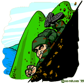 Our mission was to do a helo insert at a certain spot and traverse the terrain in a big circle (about 15-20 miles) over two days, maintaining effective communications with a PRC 104, PRC 77, and DCT to report anything and everything we saw. Being the junior corporal on this mission, I was the assistant team leader and RTO for our small recon team. Having just come off intensive training on field-expedient antennas, and convinced that they were the best way to make NVIS (Near-Vertical-Incident-Skywave) antennas which would shoot over mountains, I packed myself down with all sorts of wire, tools, as well as extra batteries. There would be no resupply, so we all loaded ourselves with water to last us for the duration. By the time we left, I loaded myself down so much, in fact, I had trouble carrying my pack in front of me; it had to be on my back or I was going to struggle. After a few false landings, the pilot finally put us down on the LZ, and we hit the ground running -- establishing a security perimeter and personnel accountability immediately upon touch down. I remember the extreme difficulty I had in slinging the alice pack over my shoulder as I exited the bird, but I wasn't about to complain to these hardcore recon bubbas. My job was normally in the rear, staying up all night, maintaining communications with the teams. Recon teams are very tight-knit, so naturally I was an outsider to this group, therefore I had to prove my mettle in the field. Not long after landing, we made comm with the head honchos via DCT bursts and made a sitrep. Figuring we were too close to the "enemy" when helos started hovering almost directly over our position, the team leader, Cpl. Peel, looked at me with intensity, "Pack up the gear. We're hauling ass." With the help of some of the other team members, I packed up everything as quickly as I could and we started our patrol out to check point #1. Now, when we planned it all out on the map, we decided to traverse the side of the mountain instead of risking being seen on the skyline. It didn't look too steep at the time, but once we got there, it was a different story. How there were any trees at all was just amazing, because in order to be there they almost had to grow straight out of the side of the mountain. With exception of Cpl. Peel, everyone was having one difficulty or another making it across various obstacles. On one of my glances back, I watched two of our guys slip about 25 feet down because the terrain was so unyielding. I thought I had a system down that would allow me to keep going without slipping. However I was soon to be proven wrong. We got to a spot where the trees just stopped growing. It looked as if a landslide had occurred on just this narrow strip. There was nothing to grab on to. The point man was Cpl Peel, and he had made it fine, but I did not see how he did it. Naturally, I didn't think it would prove to be much of a challenge for me, but my overloaded pack and lack of trees to hold onto forced my foot out from under me, and I went sliding. Again, there was nothing to hold onto, so I just kept sliding down. I looked to my left and right to find something -- ANYTHING -- to grab, and finally I came upon a small root growing out of the ground, and I snatched it, but at the speed I was sliding, I couldn't hang on, and all I managed to do was turn myself around and tear up my hand. Now I could actually see where I was sliding, and there was no stopping until the bottom. I remember the faint thought of death crossing my mind when I went over a ledge seeing nothing but a large drop onto sharply pointed trees, but as if it extended from nowhere just to catch me, I landed on a very large root growing straight out of the side of the mountain, twisting my ankle in the process. I stayed motionless for a moment, making sure I was okay and trying to make out any noise which would indicate our position had been discovered by a nearby unit, but all I saw and heard was, a few moments later, LCpl. Smith sliding down after me. "You okay Corporal Miles?" "Yeah. Let's get out of here." He looked up and saw the mountain was far too steep to scale without help. "Um. How exactly do you propose we do THAT?" So, getting a firm footing and allowing him to climb on me, I pushed him up to the next foothold. Afterwards, he would grab my rifle and pull me up by it. We did that the entire way back up the mountain. When we finally arrived at the top, Cpl. Peel brought everyone together and gave us these words of encouragement: "No more falling." And no one did. Semper Fi! Have a sea story you want to see published on our site? Send it here!